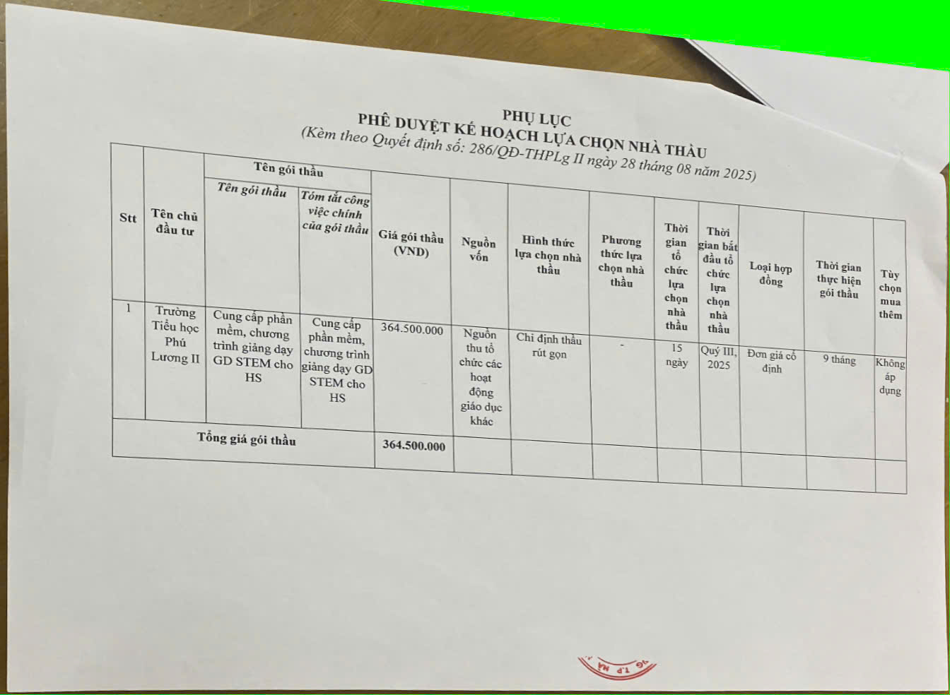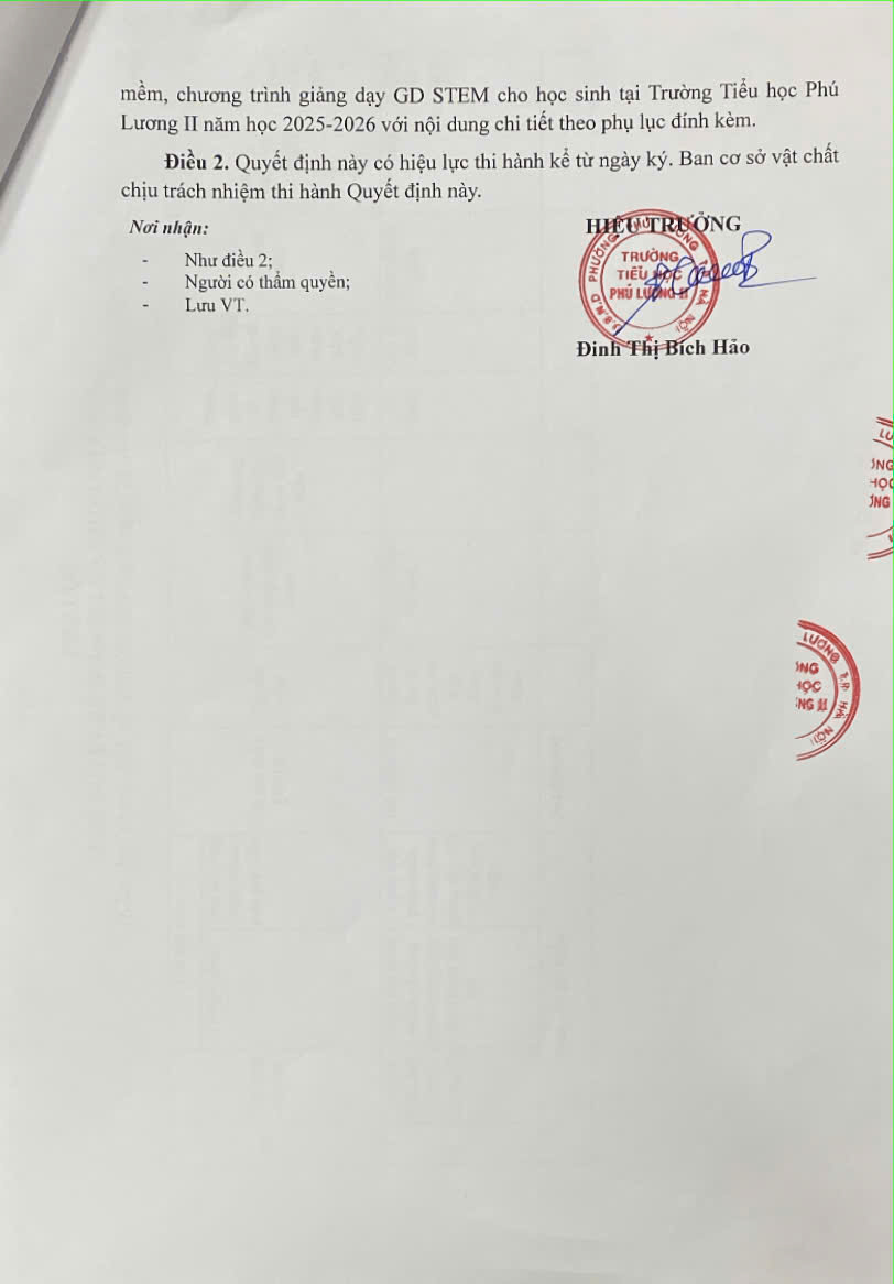 Quyết định phê duyệt keess hoạch lựa chọn nhà thầu GD Stem Năm học 2025 - 2026